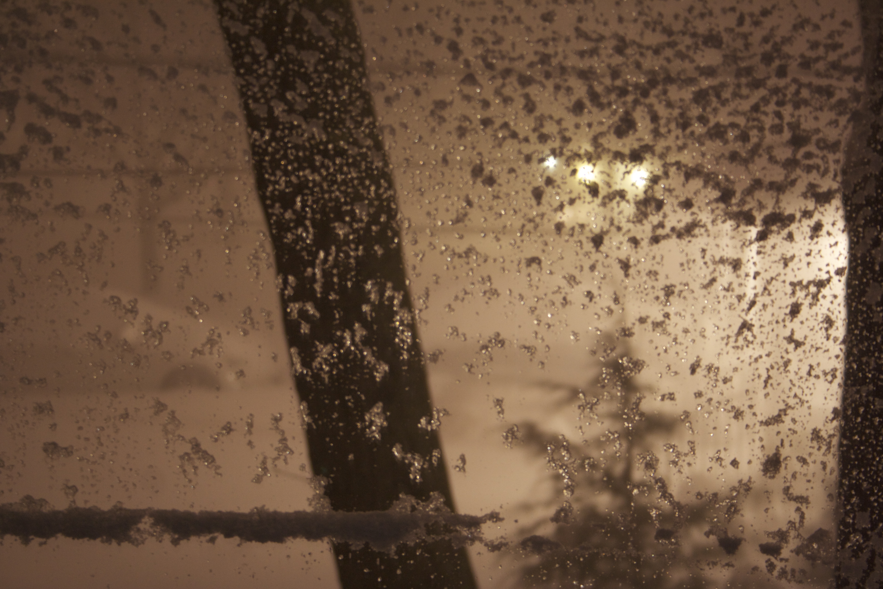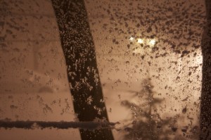 Ok then? Ok. It’s snowing. Here’s what the snow looks like if the wind has been blowing it against your window: