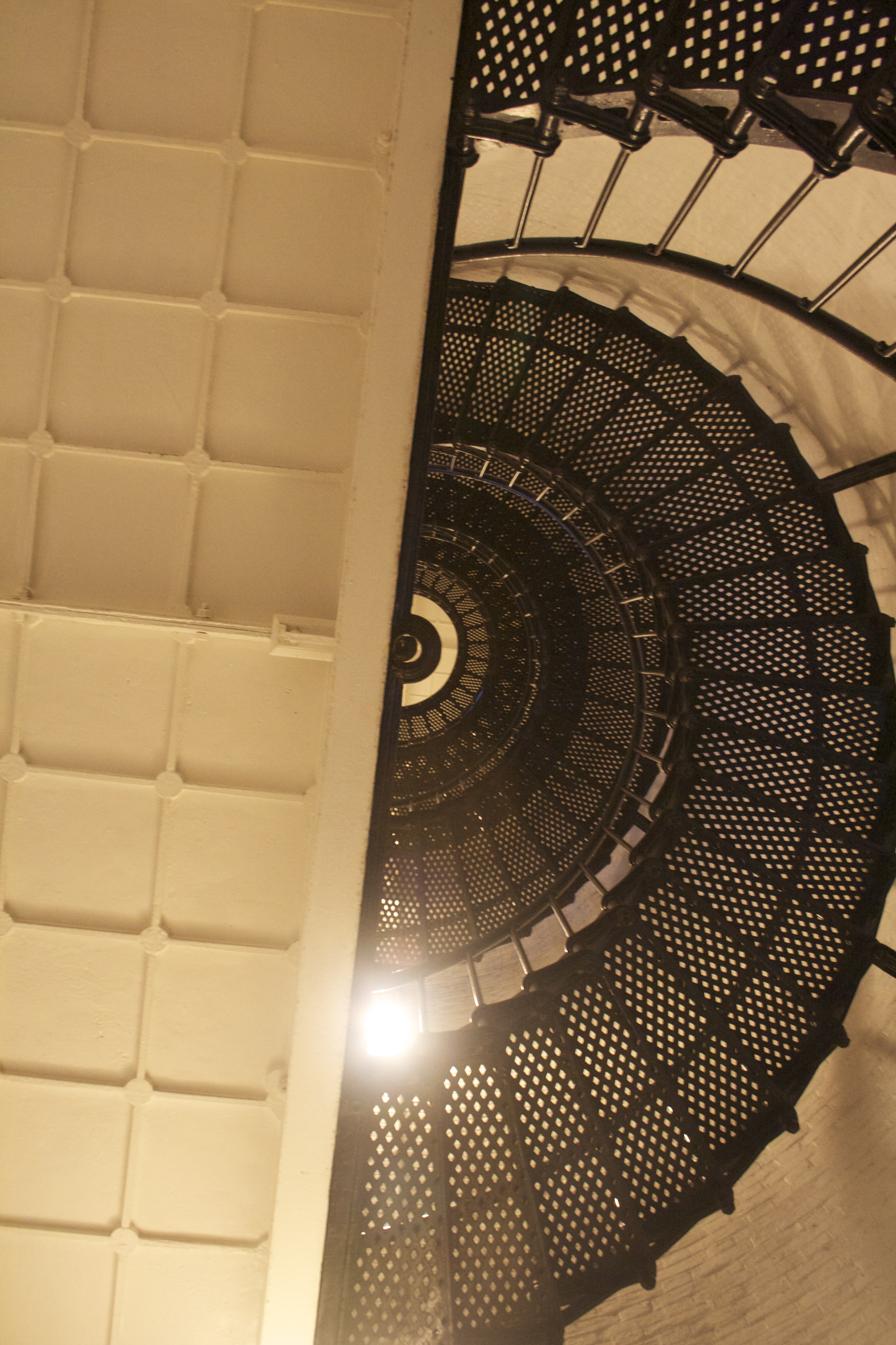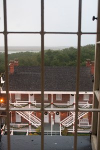 The first thing I saw on my way up was the keeper’s house. The keeper’s house was built on the site in 1876, and housed keepers and assistants until 1955, when the lighthouse was automated. Its brick exterior makes it the perfect mate to the lighthouse itself, which was constructed of Alabama brick and Philadelphia iron in 1874 (it took three years to construct). Though it’s made out of brick, the lighthouse is painted in white and black spirals.