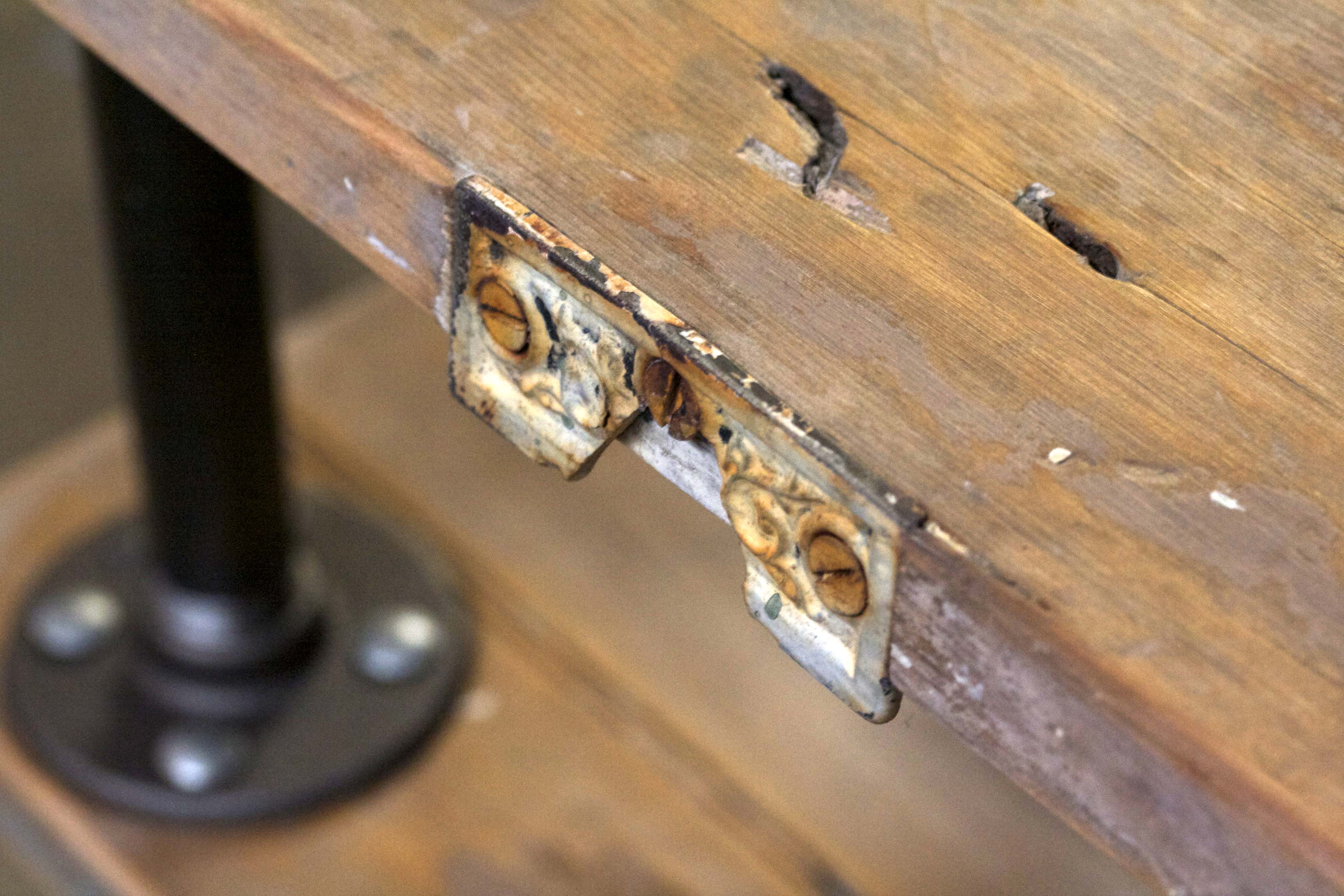 Even cooler? Its original hinge, just hangin’ out there on the side of the door.