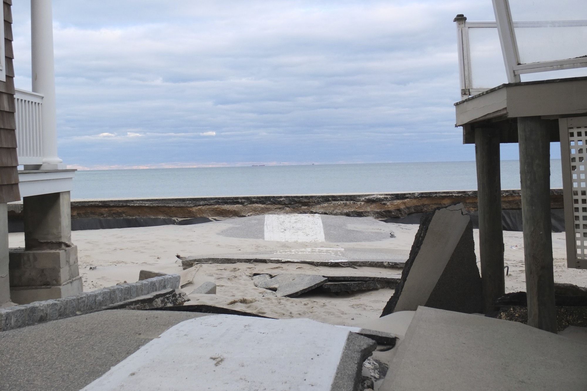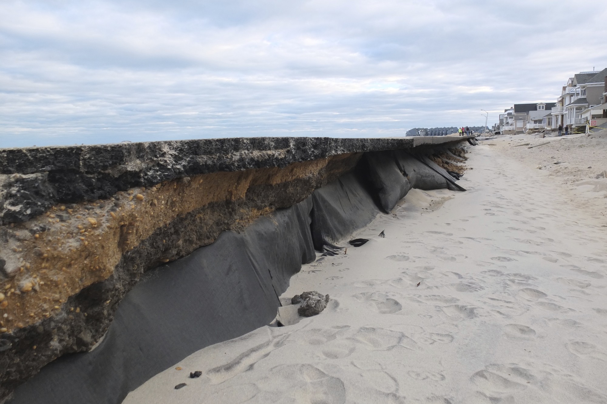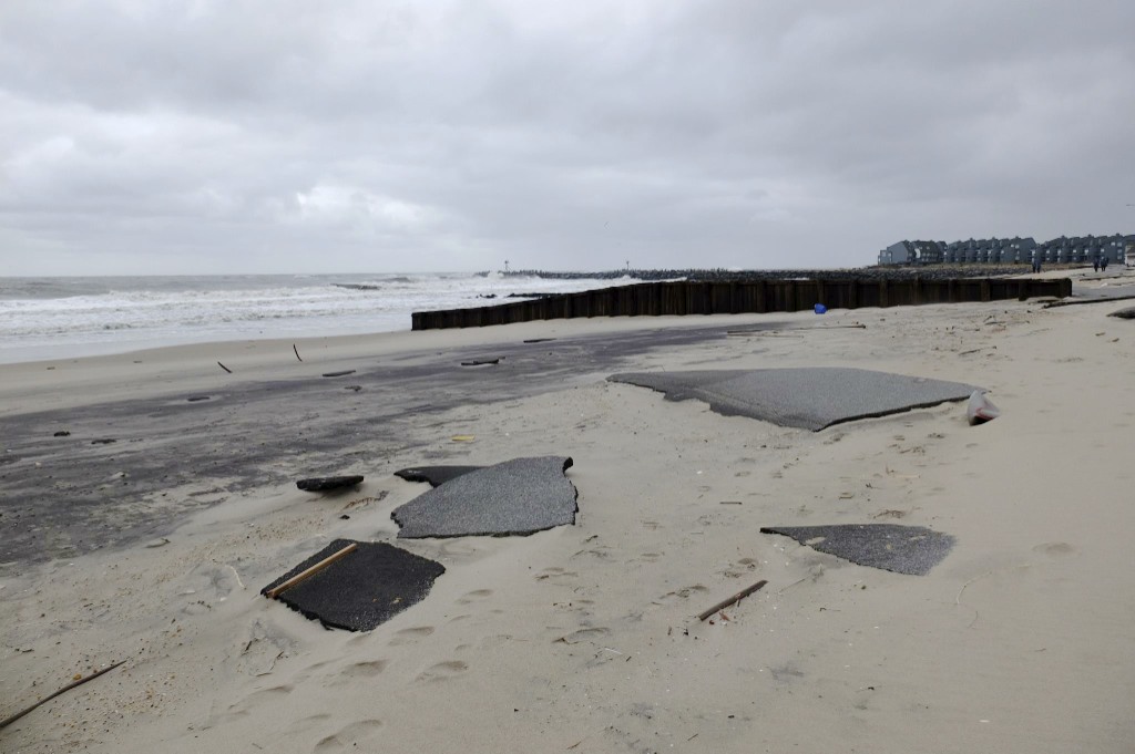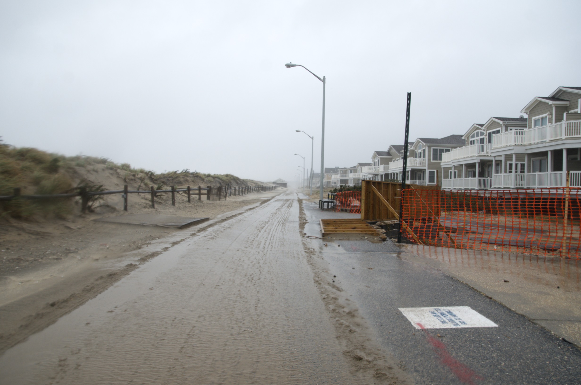 After the storm, sand was at least two feet lower than the previous ground level around the macadam.