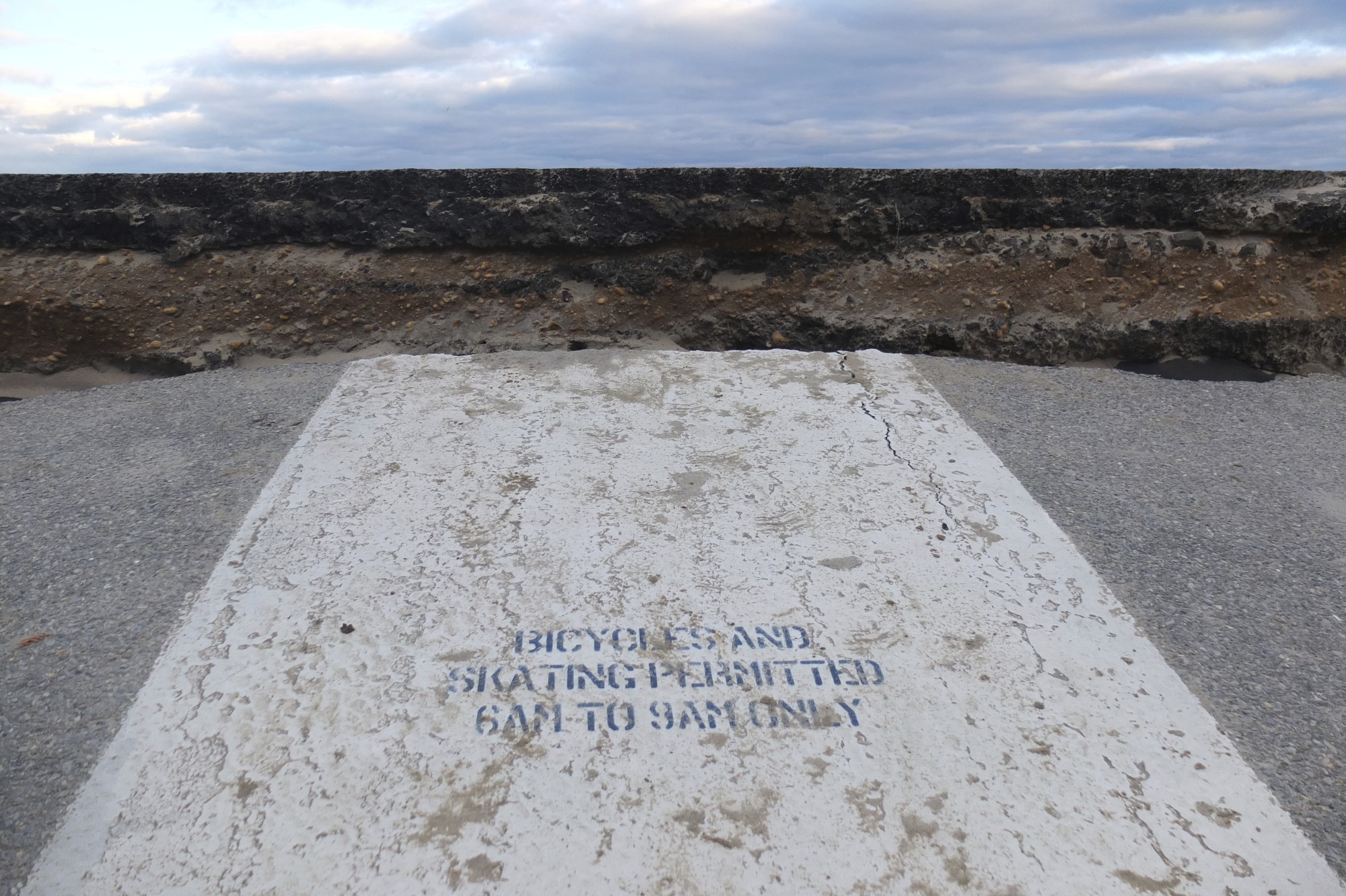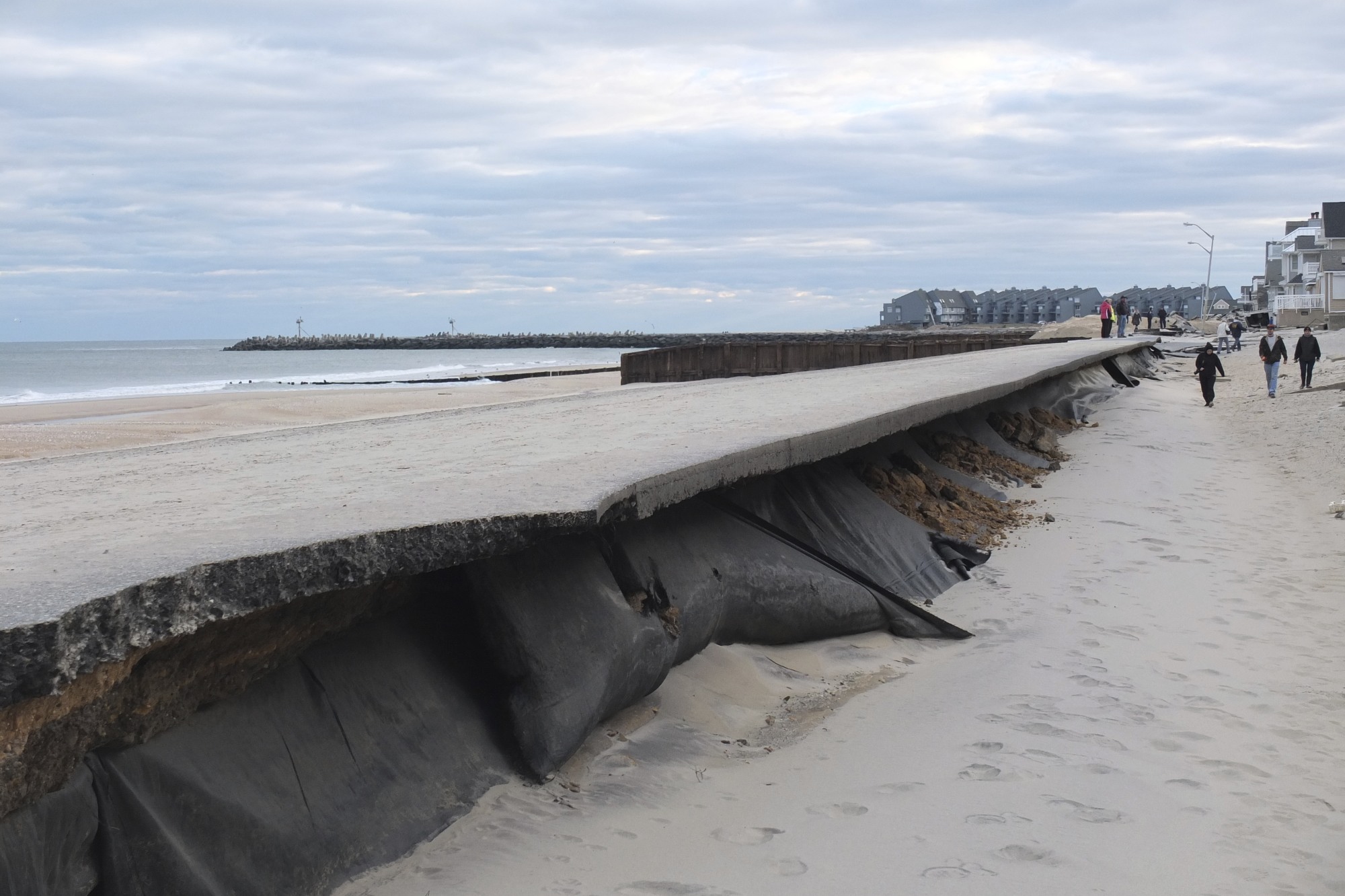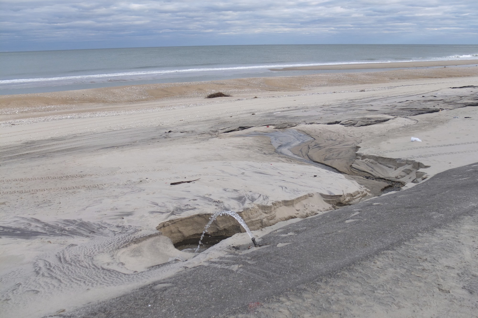 After the storm, sand was at least two feet lower than the previous ground level around the macadam.